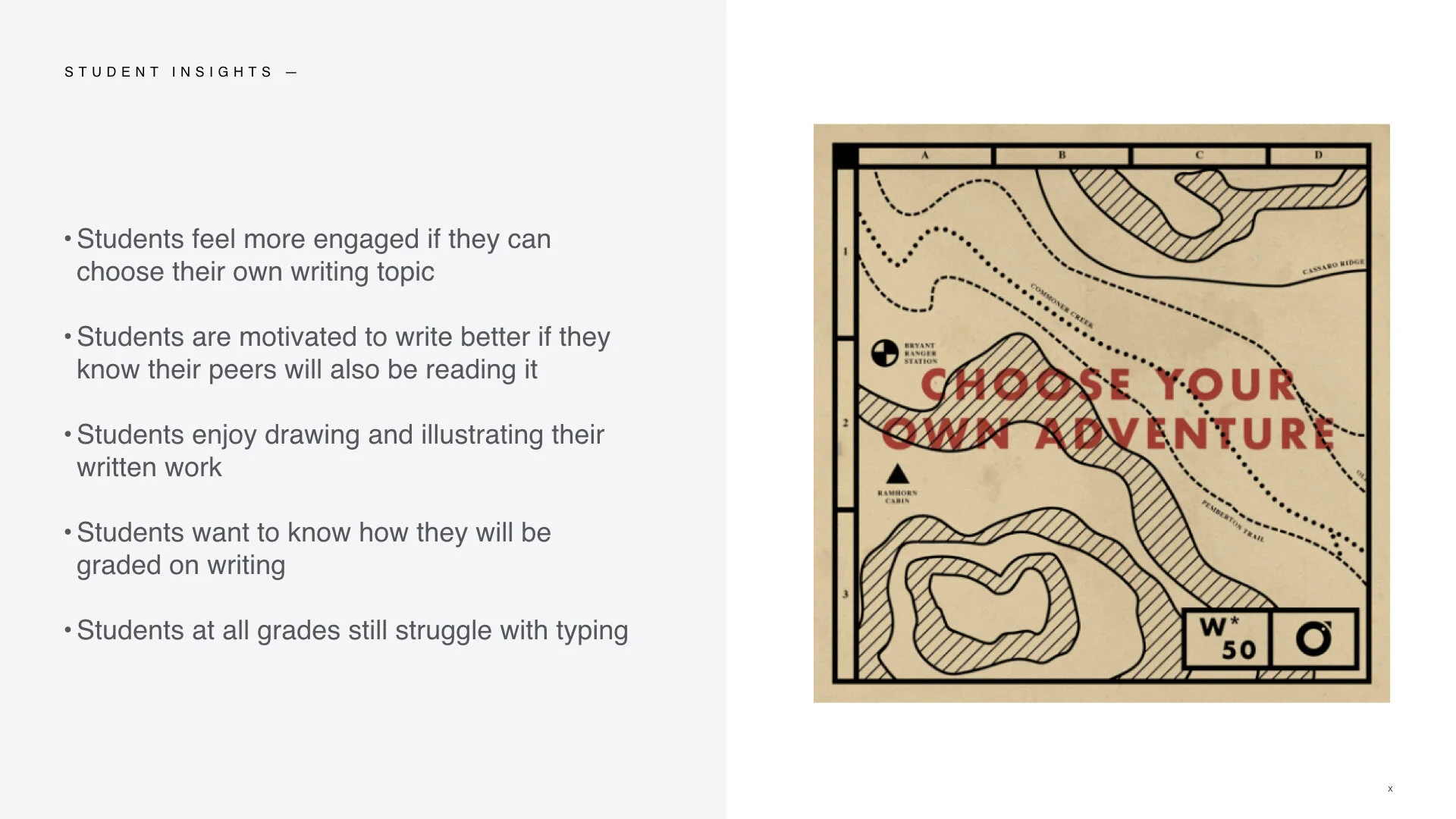 Students are more engaged when they are able to choose their own writing topics and more motivate when they are aware that they will share with their peers.